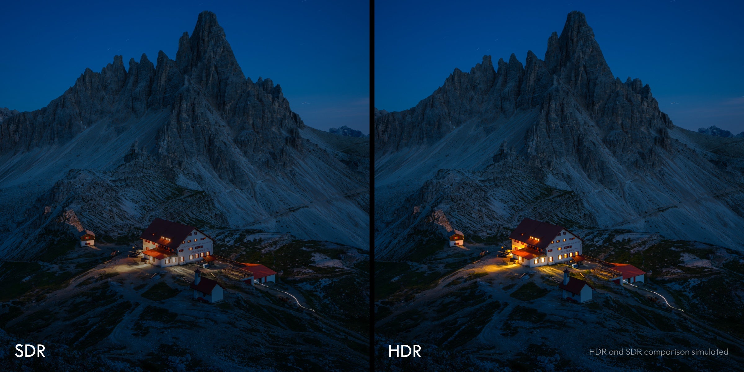 Hasselblad HNCS HDR extends the colour gamut to the wider P3. The new imaging system also features 1400‑nit peak brightness—a 75% increase over previous models. These advances unlock the medium-format sensor's complete imaging capabilities, revealing nuanced details in highlights that would otherwise be lost.